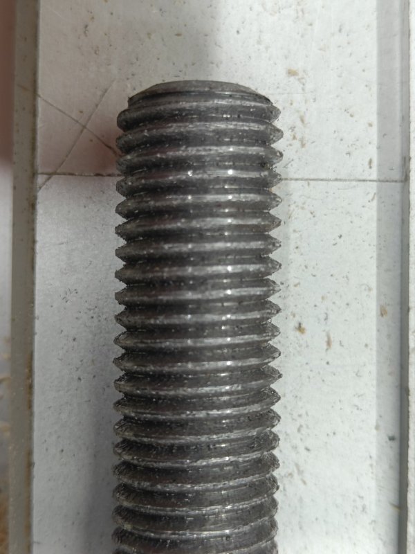 Mischien dat de foto een niet zo duidelijk de grofte aantoont maar als je de draad over een vod trekt komen de vezels mee. En dit draadeind is dan al met de vijl bewerkt. Ik denk toch dat er een beter oppervlak rechtreeks van de draaibank moet mogelijk zijn.