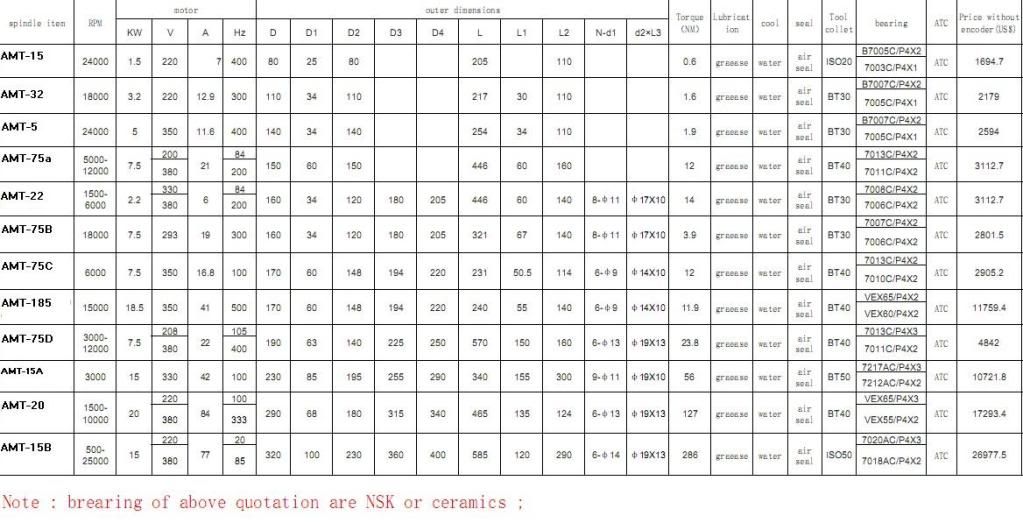 Prijs is redelijk tot goed, Elte spindles zijn duurder maar beter. (inderdaad zo'n 5K voor een 3,6Kw met iso-30 opname, 18Krpm)